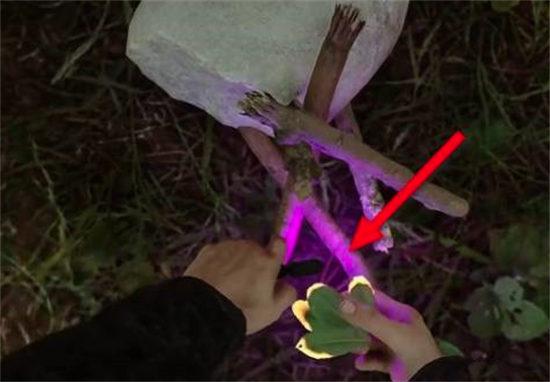 装备木棍时,看向地面出现两道虚线,按鼠标左键即可掰断木棍放到地上。
