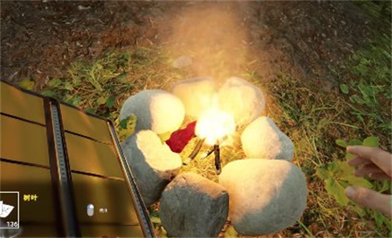 为了增加篝火的火力和持续时间,可以摆一圈石头在周围。
